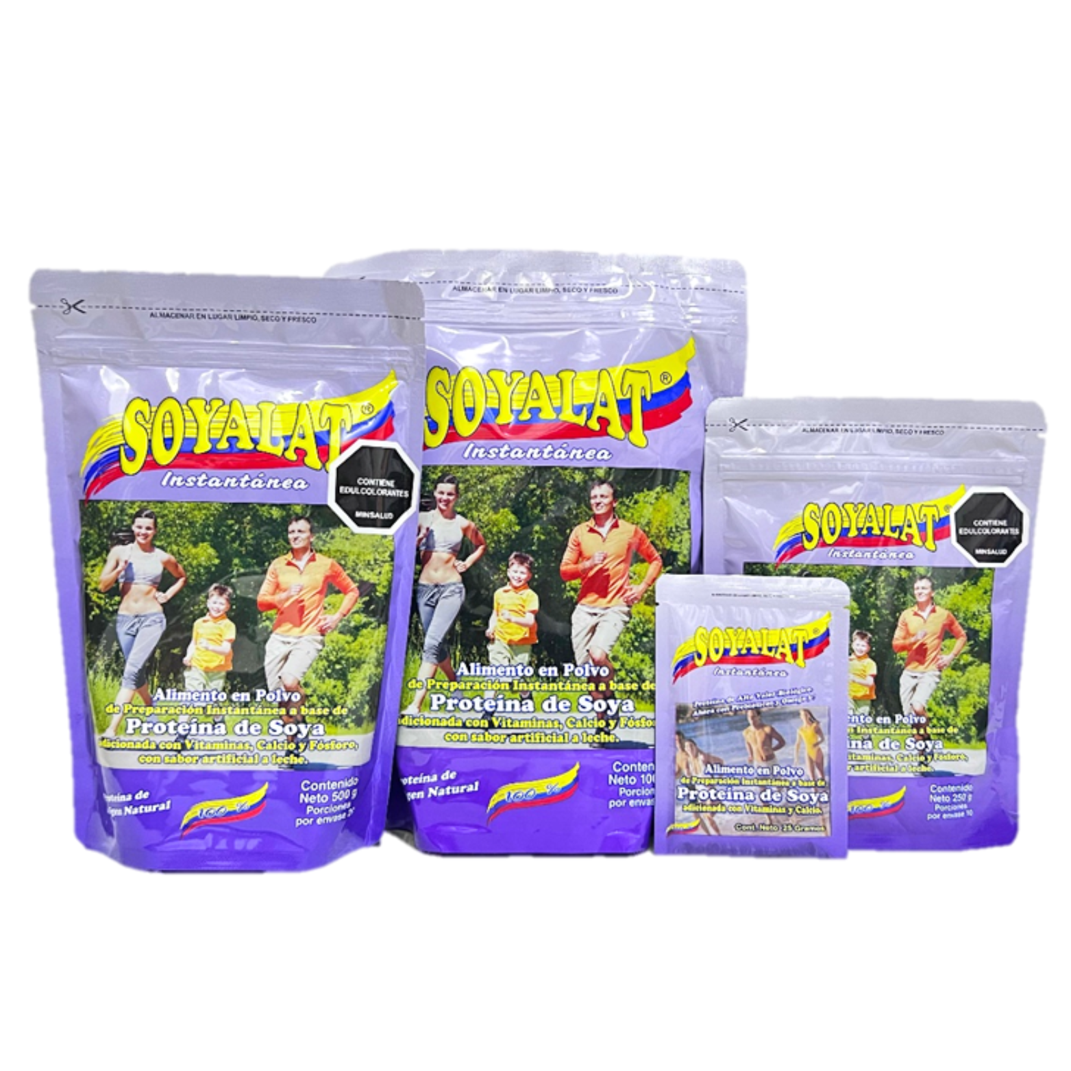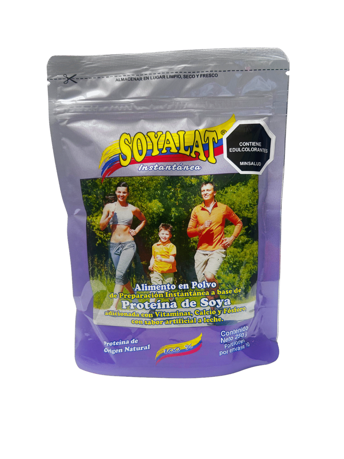 Alimento en polvo a base de proteína de soya con vitaminas, calcio y fósforo.